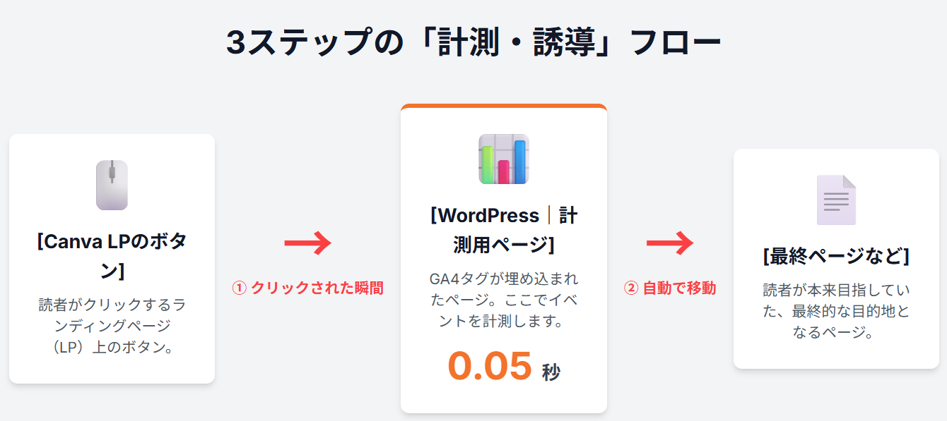 【解決策】Canva → 計測用WordPressページ → 最終ページ